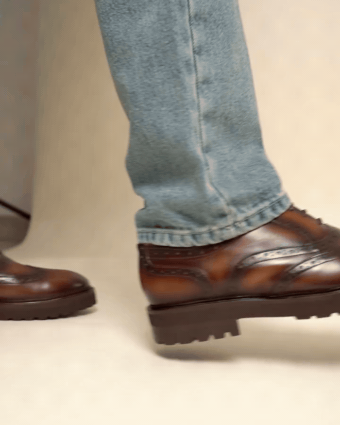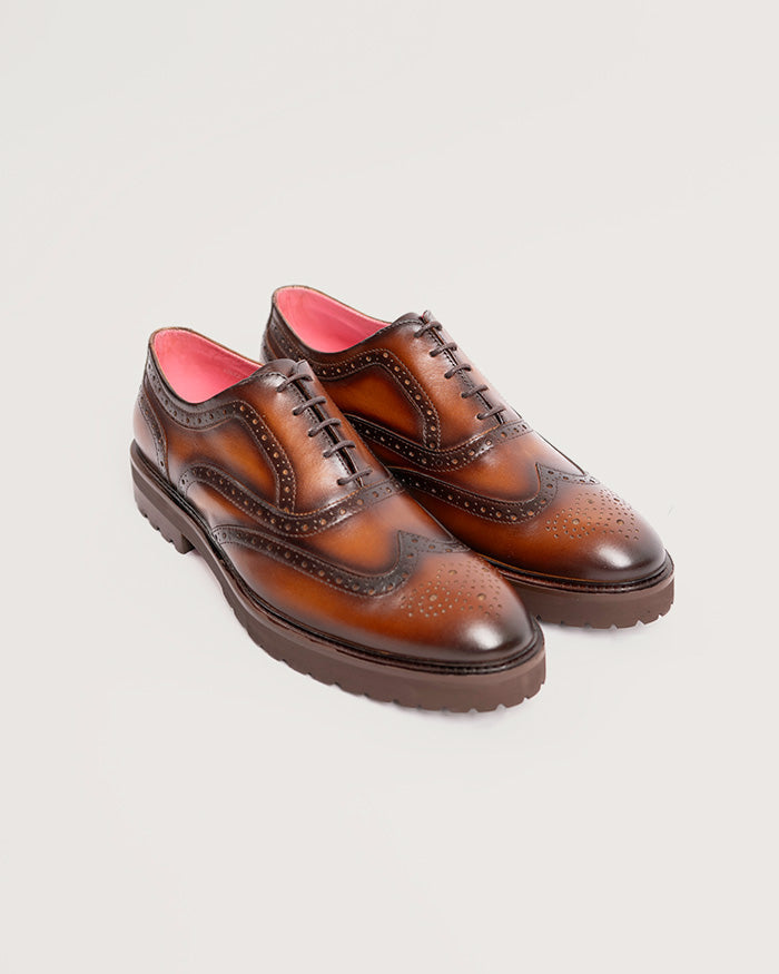 Una silueta clásica redefinida con mayor precisión. Este oxford de inspiración brogue evoluciona con proporciones más actuales y una suela de carácter que refuerza su presencia.