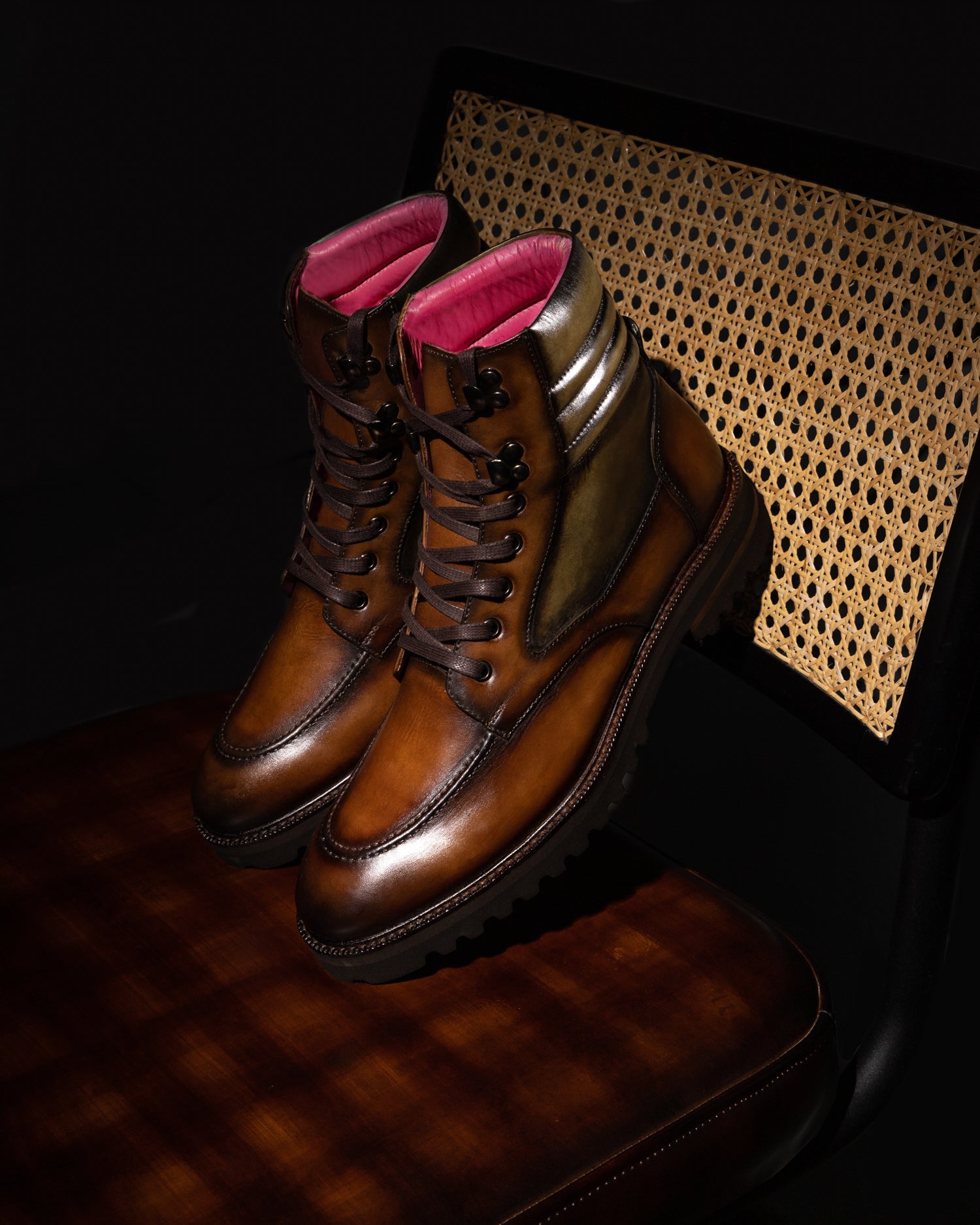 Nuestra técnica de pintado a mano Patina, transmitida de maestros italianos a nuestros artesanos colombianos, garantiza que cada zapato sea una obra maestra única. Al combinar tecnología de vanguardia con una artesanía experta, creamos piezas únicas que representan el poder de ser diferente.